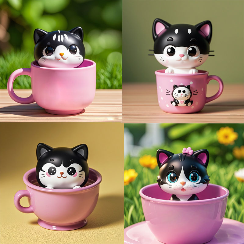 開模定制茶杯奶牛小貓PVC塑膠玩具手辦盲盒定制動物模型桌面擺件