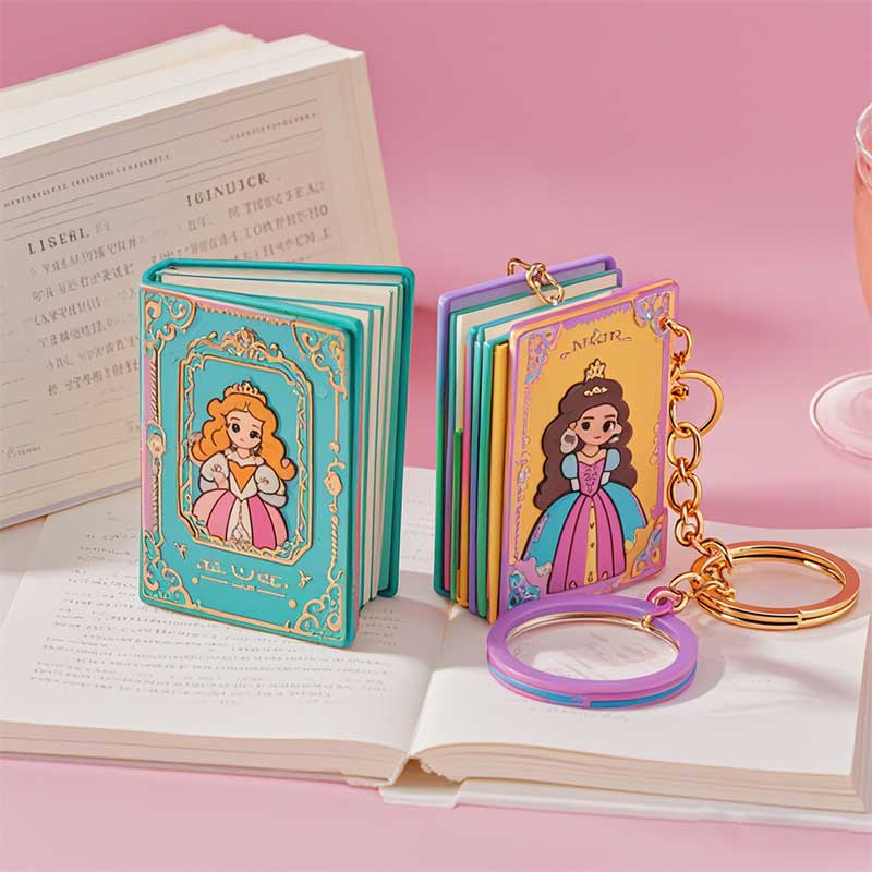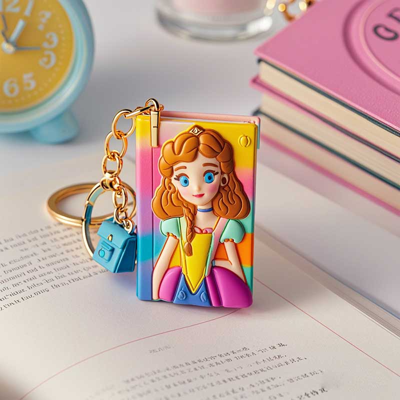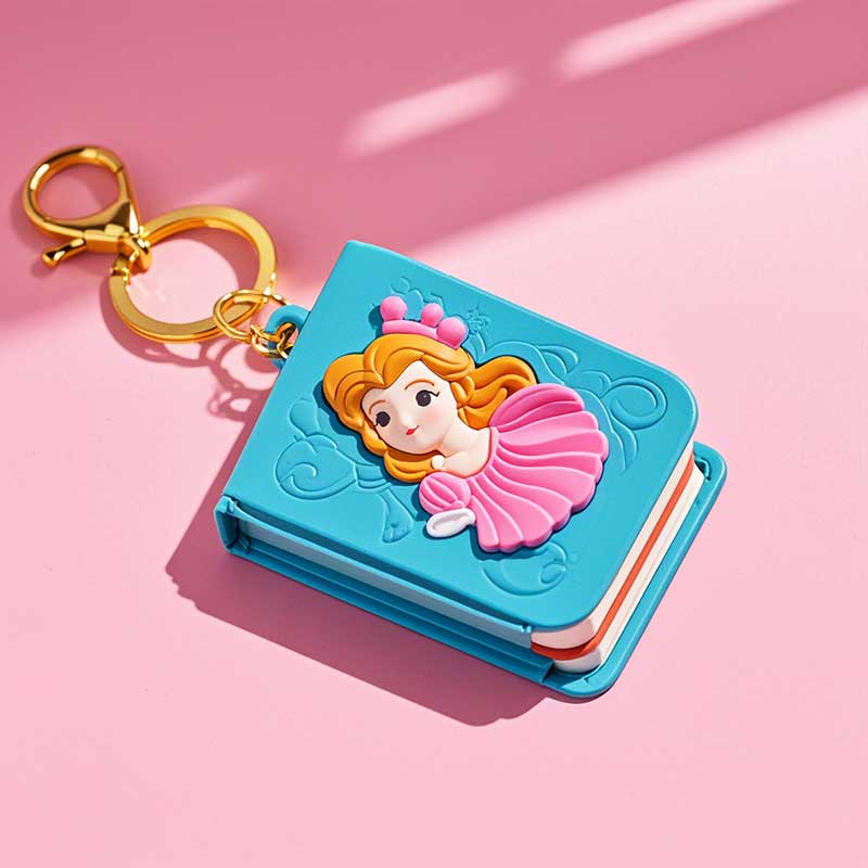 定制可愛鑰匙扣書包掛件裝飾品迷你公主書本彩色塑膠pvc鑰匙扣