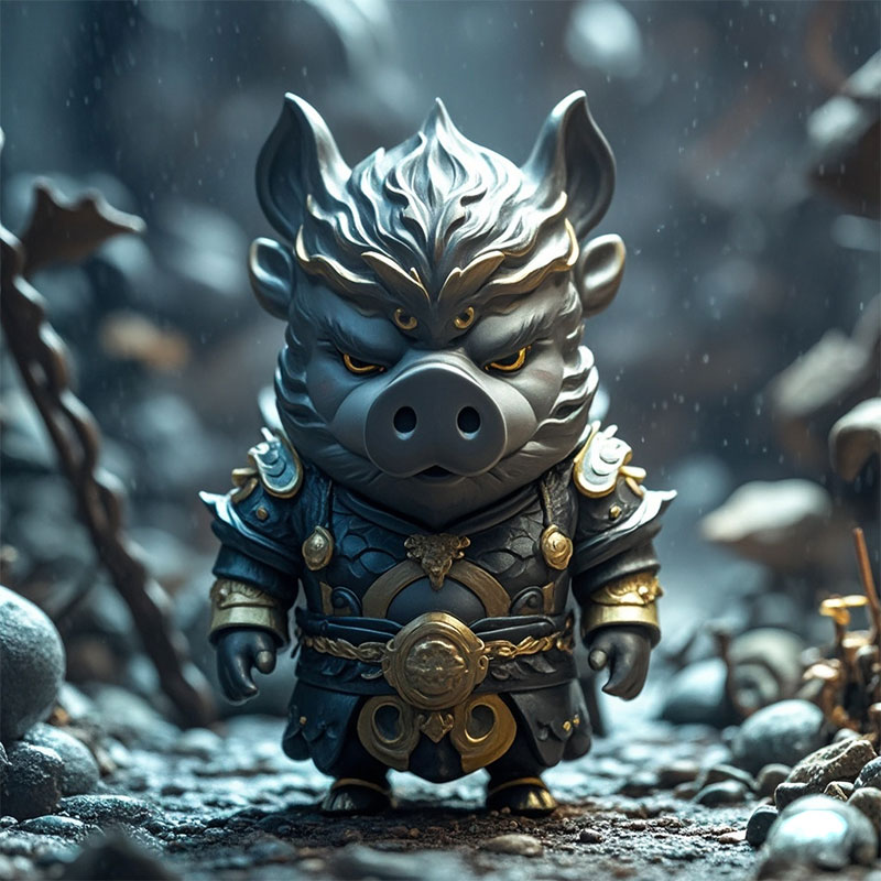 定制Q版黑暗風(fēng)八戒野豬塑膠PVC游戲角色盲盒手辦桌面擺件